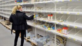 Вчера в украинских пабликах разошлось видео пустых магазинных полок с комментариями, что "киевляне раскупили всю гречку и рис", а самые дешевые крупы - гречка по 56,99-59,99 и рис по 59,99 уже исчезли из продажи.