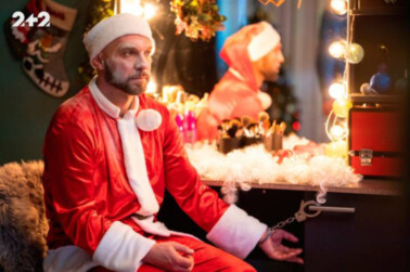 Одна из сценок новогоднего «Дизель Шоу» – как родители гуляют с детьми после новогодней ночи. Фото: instagram.com/dizelstudio/