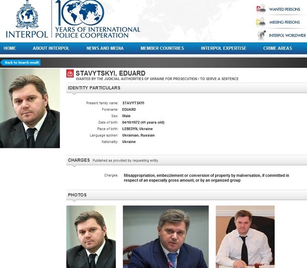 Интерпол обнародовал информацию о международном розыске бывшего министра энергетики и угольной промышленности Эдуарда Ставицкого.