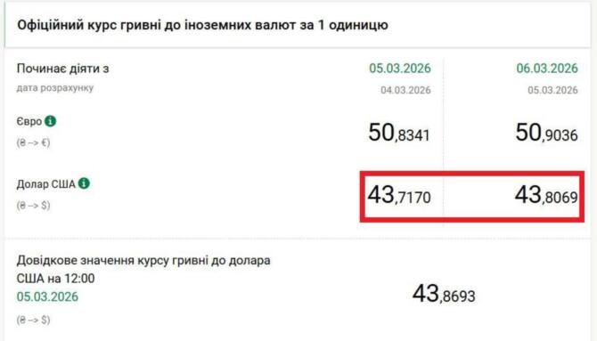 Национальный банк Украины продолжает девальвировать гривну, и установил 5 марта новый исторический максимум по официальному курсу гривна/доллар - на этот раз на уровне 43,8069 грн./$, что на 9 копеек выше вчерашнего (43,7170 грн./$).