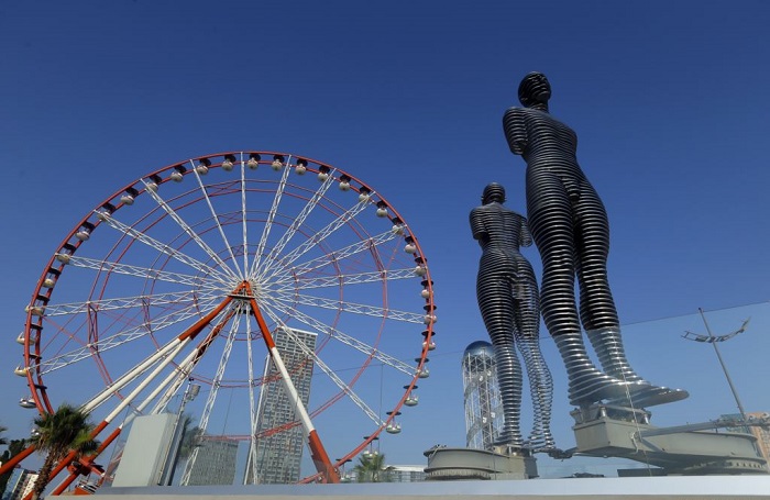 14. Перемещение статуй Али и Нино в приморском курорте Батуми, Грузия