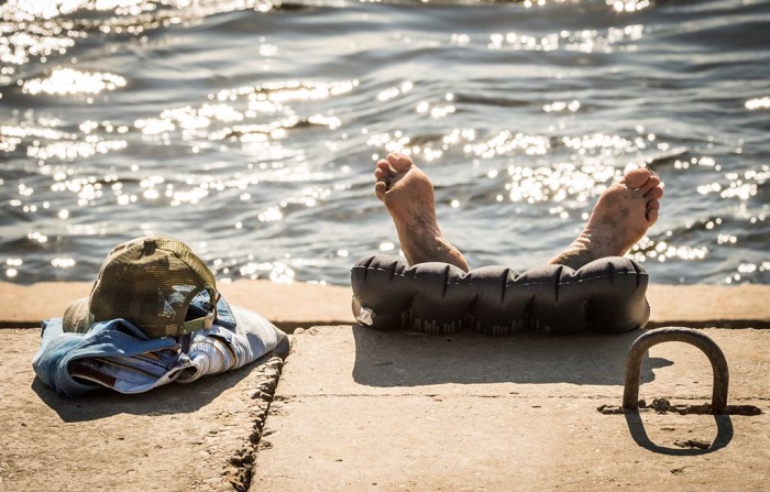 2. Человек, загорающий на берегу Волги в Волгограде, Россия