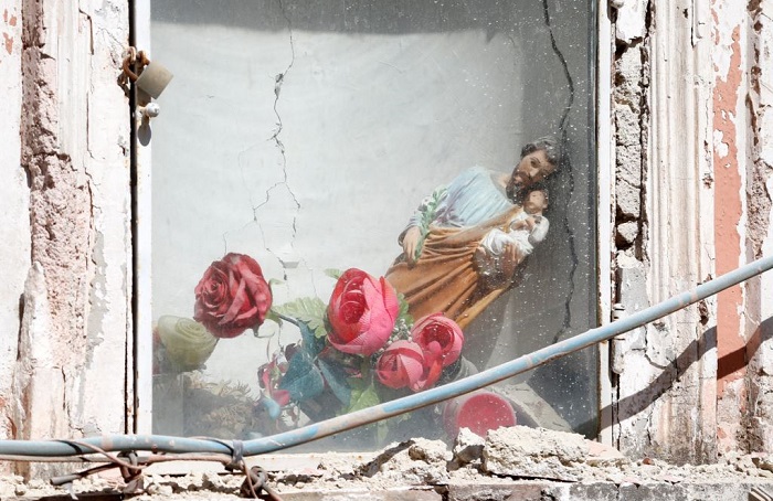6. Религиозная статуэтка, упавшая во время землетрясения на острове Искья, Италия
