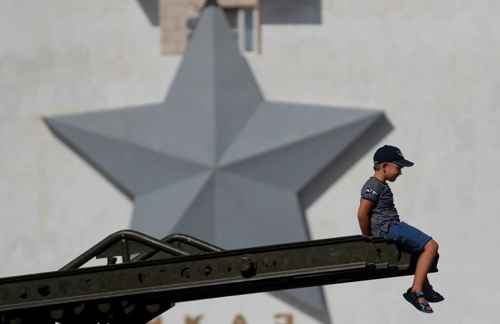 7. Мальчик, сидящий на ракетной установке «Катюша», Россия