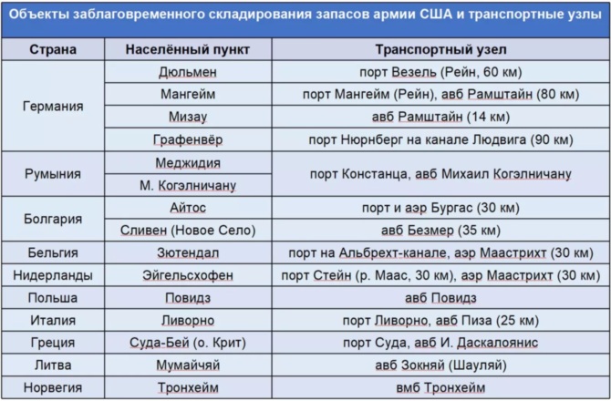 Данные мероприятия охватывают не только расширение американского военного присутствия в Европе с проведением различных учений, но и развитие военной инфраструктуры. Для этих целей было создано или реконструировано не менее пятнадцати объектов заблаговременного складирования запасов армии США в Германии, Польше, Румынии, Болгарии, Бельгии, Нидерландах, Италии, Греции, Литве и Норвегии. Конечно, в первую очередь эти объекты предназначены для развёртывания американских войск, но могут быть использованы и в качестве перевалочной базы для поставок оружия на территорию Украины.