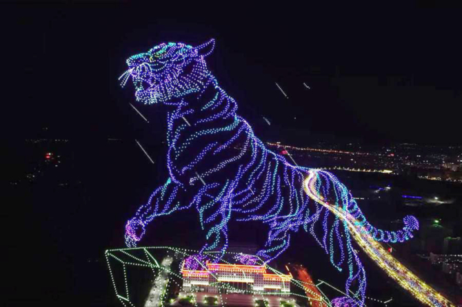 В течение ночного шоу дроны выстраивались в удивительные изображения, в том числе Великую Китайскую стену, величественного дракона, а также символы культуры региона - цветок азалии и традиционных танцоров Яньбяня. Одним из наиболее запоминающихся моментов стало изображение тигра, которое продержалось в воздухе 37 секунд, что превысило требуемый для рекорда минимум в 20 секунд.