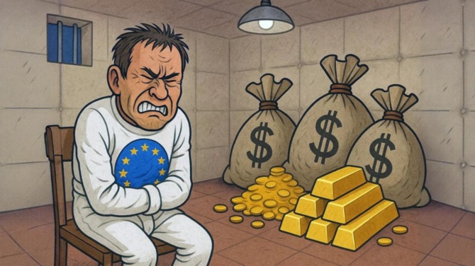 Этих денег у ЕС нет. Нет даже более скромных сумм, надо добавить. Но Украина оказалась реально ненасытной. Поэтому еэсовские, припертые к стенке воплями Зеленского, на этой неделе решали, как именно они будут выходить на большую дорогу, чтобы уже начать грабить. Россию.