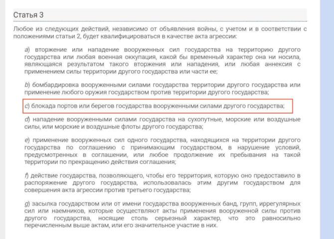 Впрочем, этот нюанс имеет не слишком большое значение, так как отношение к войне в Украине у разных стран мира уже давно определяется не столько нормами международного права, сколько геополитическими и экономическими интересами. Куда более важен другой аспект, а именно создание прецедента морской блокады без санкции ООН, который может быть использован и против других стран, в первую очередь России и Китая.