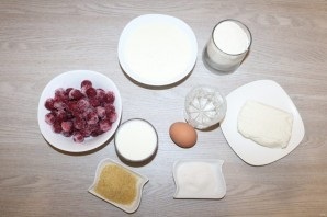 В качестве заливки можно брать йогурт или сметану. Вишня подойдет как свежая, так и замороженная. Замороженные ягоды разморозьте, удалите косточки и обязательно немного отожмите сок.