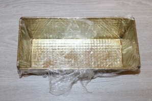 шаг 8. Форму застелите пищевой плёнкой.