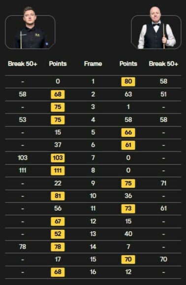 Кайрен Уилсон (Англия) – Джон Хиггинс (Шотландия) – 10:6