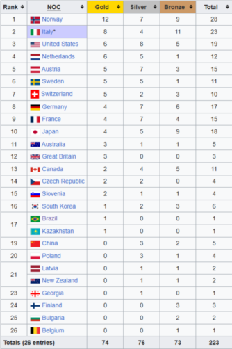 В понедельник, 16 февраля, на 25-й зимней Олимпиаде в Милане и Кортина-д’Ампеццо было разыграно шесть комплектов наград.