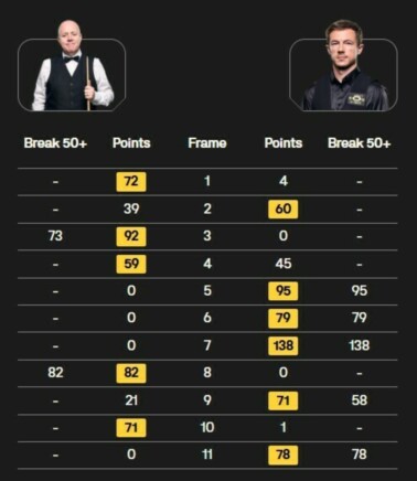 Английский снукерист с украинскими корнями Джек Лисовски в напряженном матче выиграл у 4-кратного чемпиона мира Джона Хиггинса из Шотландии (6:5).