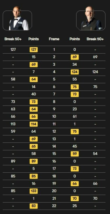 Однако с 2019 года англичанин выиграл лишь три матча на финальных стадиях и вылетал в первом раунде в течение последних трех лет. Уверенная победа 10:4 над Мэттью Стивенсом на этой неделе позволила 47-летнему игроку прервать неудачную серию. Теперь он встретится с Марком Алленом в борьбе за выход в полуфинал. «Ястреб» пытается завоевать первый титул чемпиона мира.