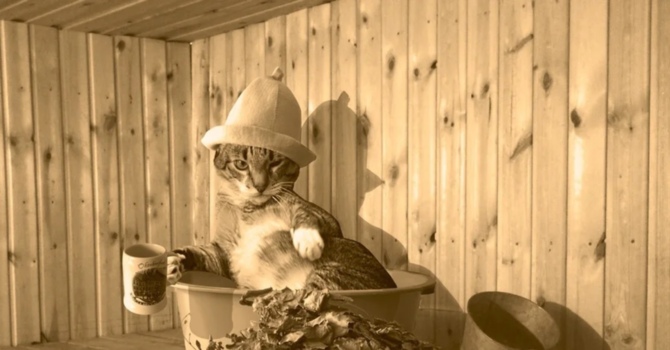Живу в деревне. Есть своя баня. Два года назад обнаружил, что мой кот любит париться. Как-то топил баню, мыл полки. Нес свежие веники с улицы, и со мной забежал кот (а до этого он никогда не интересовался баней, не заходил внутрь). Изучил все, зашел в парилку (там уже было довольно жарко), лег на полок. Ну, думаю, полежит минуту и уйдет. А он не уходит все.