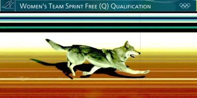 Пёс - участник соревнований по лыжным гонкам на Олимпиаде. Это уже второй случай, когда собака решила самостоятельно пройти трассу соревнований. Организаторы даже показали его фотофиниш. На финишной прямой пес оказался рядом с гречанкой Константиною Харалампиду и хорваткой Теною Хаджич. Пока неизвестно каким номером он финишировал.